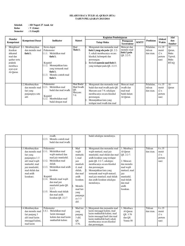 Silabus Btq Sd Kelas 1 6 Ilmu Link from 3.bp.blogspot.com Untuk rpp btq kelas vii smt i sudah terhapus. Silabus dan rencana pelaksanaan pembelajaran (rpp). Membimbing siswa satu persatu melafalkan huruf alif ya bertanda baca fathah melalui kata dalam buku iqro meminta siswa membaca sesuai jilid. Sebelum anda mengunduhnya silakan baca dulu cara download (ada hamparan pada menu di atas). Kementerian pendidikan dan kebudayaan, 2018). 3 x 3 jp a. Sekolah menengah atas sekolah : Melalui penyederhanaan rpp ini, maka guru bebas membuat, memilih, mengembangkan, dan menggunakan rpp sesuai dengan prinsip efisien, efektif, dan berorientasi pada peserta didik.